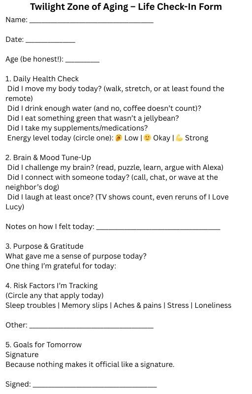 Twilight Zone of Aging - Life Check-In Form